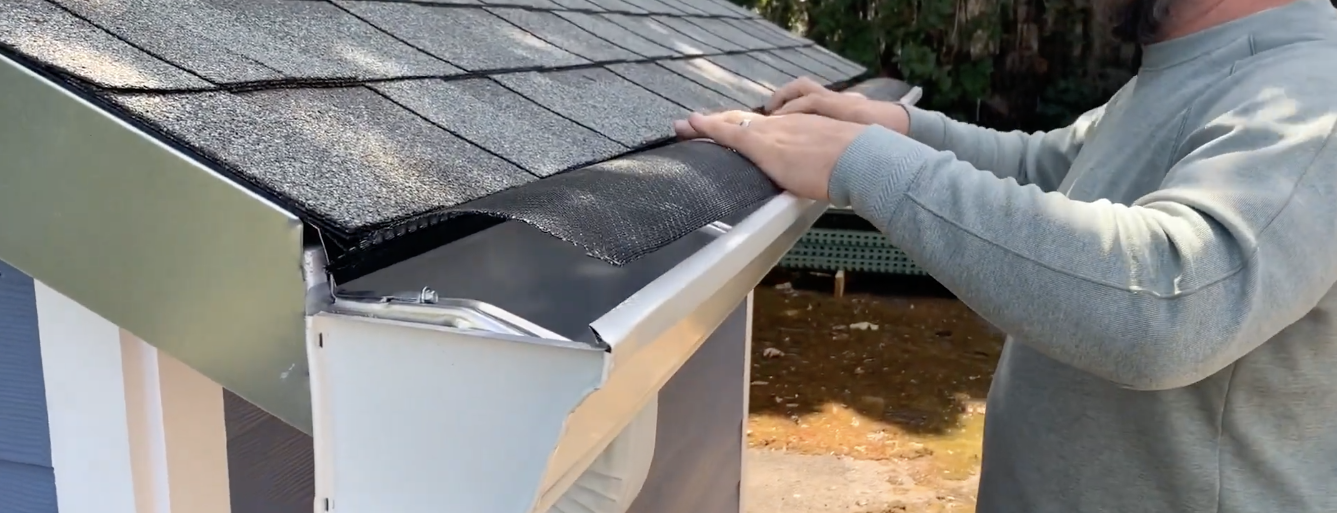 With slight pressure, insert the other side of the gutter guard into the gutter to complete the instillation process.